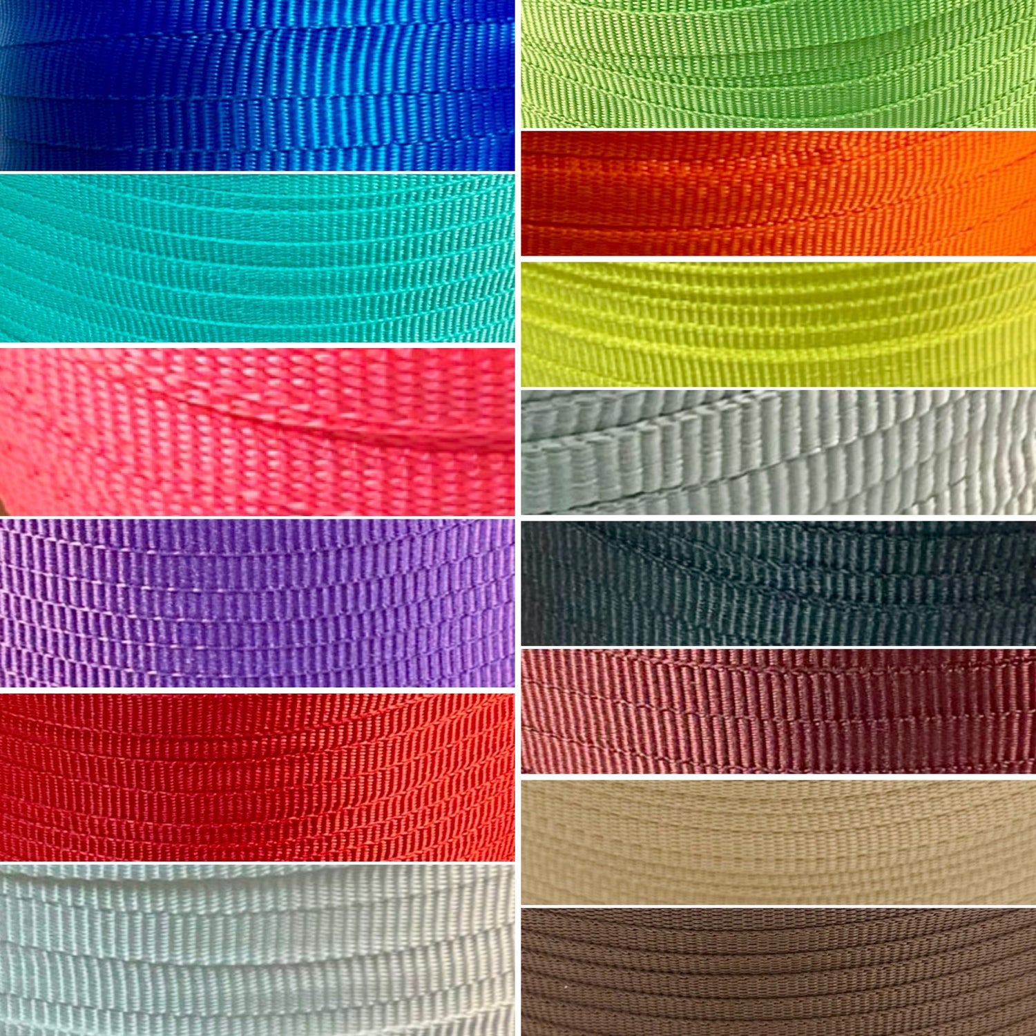 Add muletape to your product to add strength and color! With a tensile strength of 1250lbs it's perfect for halters, lead ropes, etc. Available colors: Royal Blue, Turquoise, Hot Pink, Purple, Red, White, Neon Green, Neon Orange, Neon Yellow, Grey, Black, Burgundy, Beige, Brown, (Not Pictured; Navy Blue, Kelly Green).