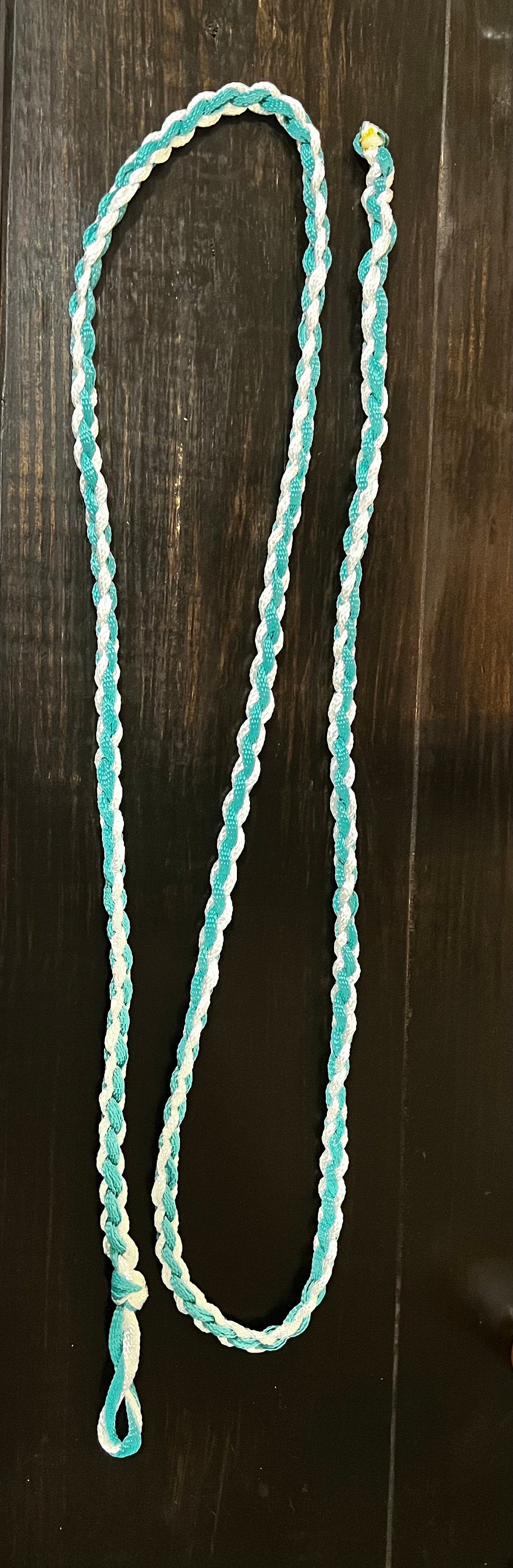Handmade mule tape lead rope 8’. Can be made with or without a snap. Choose up to two colors! This mule tape is stout and made to last! Feel free to send me a message if you have any questions! I look forward to creating something special for you and your horse. Thank you for supporting my small business!