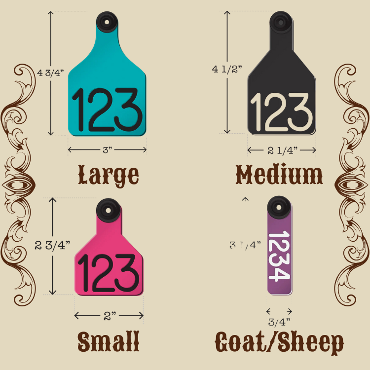 *Goat/Sheep size are only big enough for a smaller name or ID number.