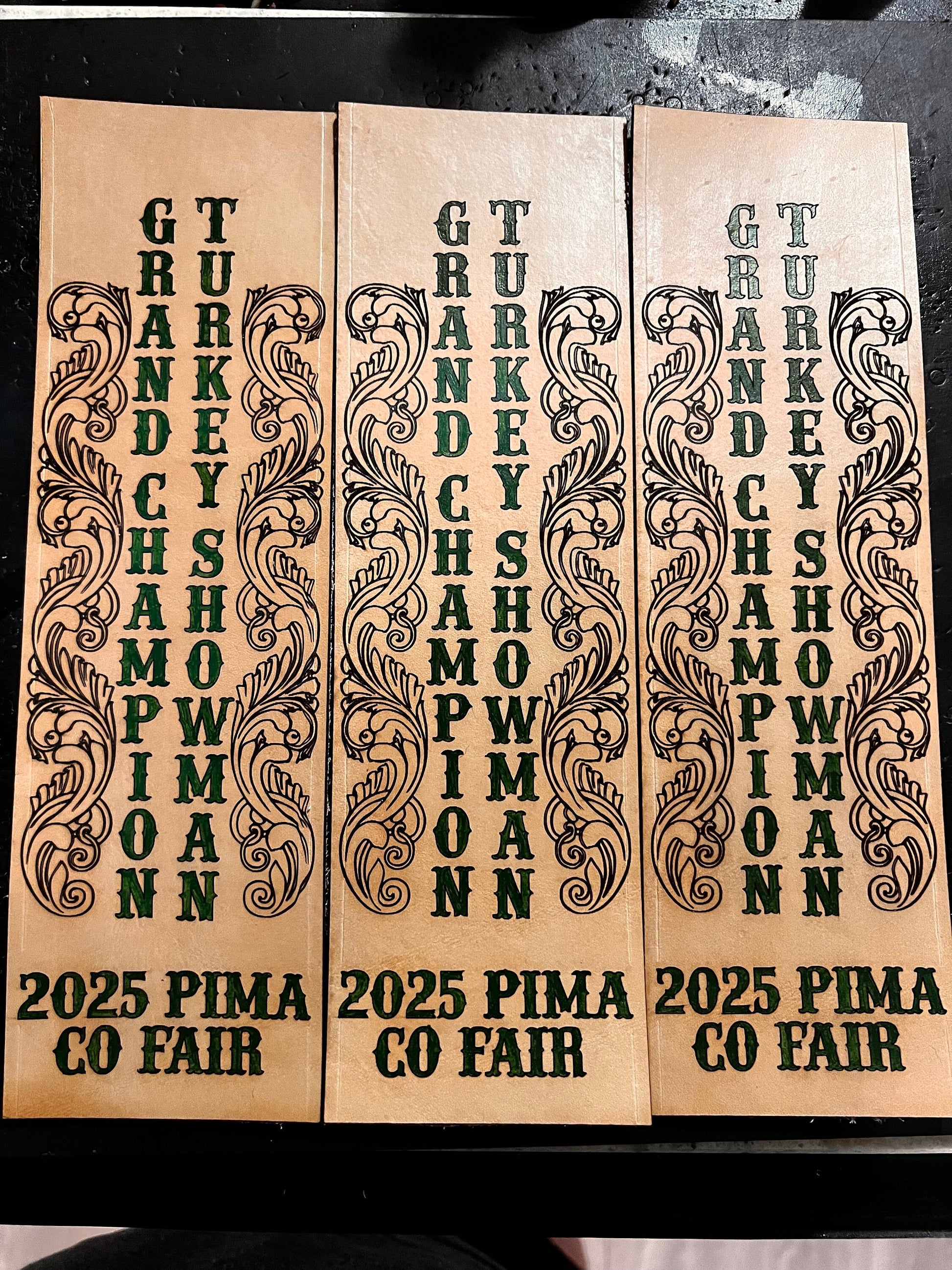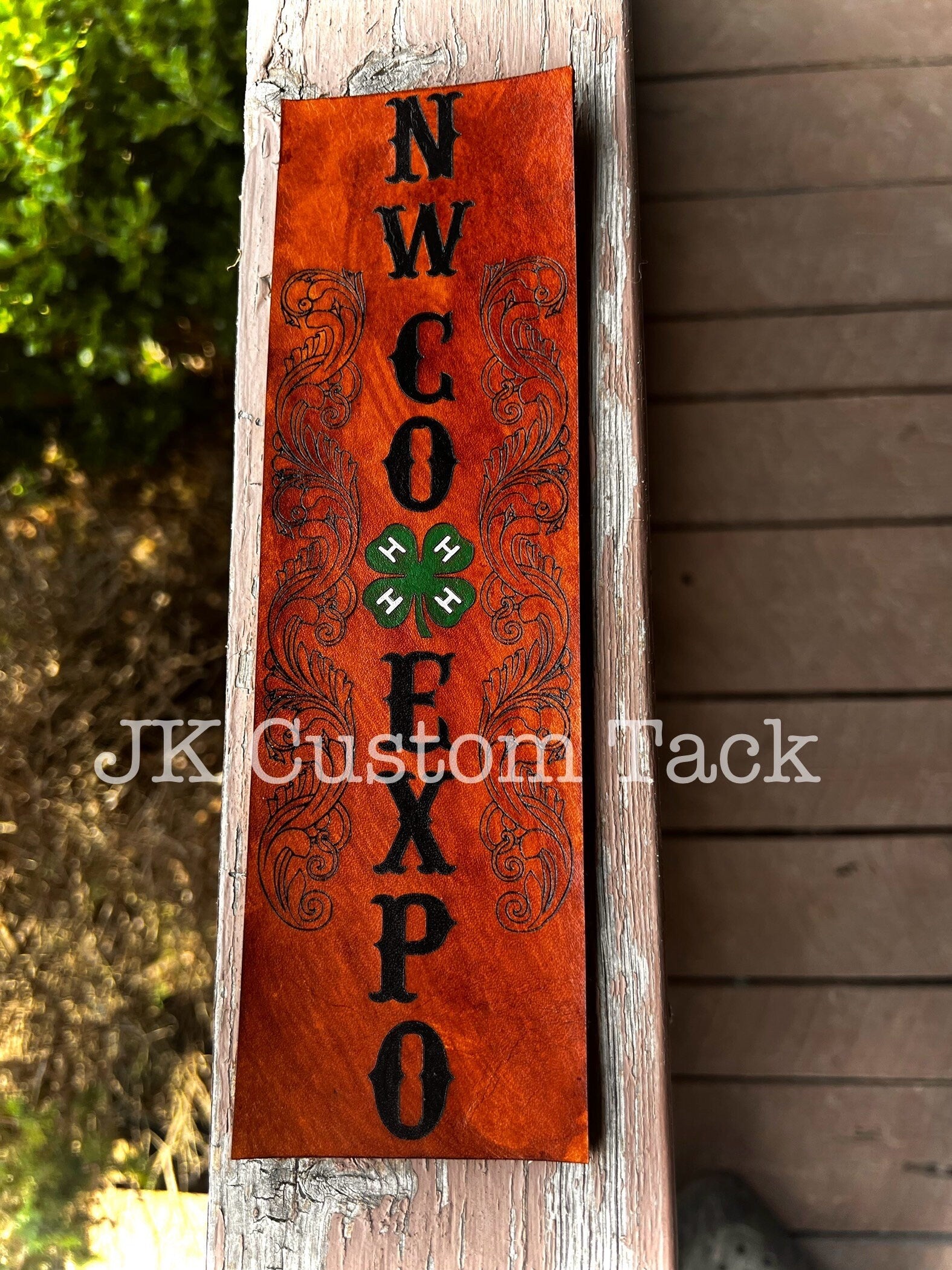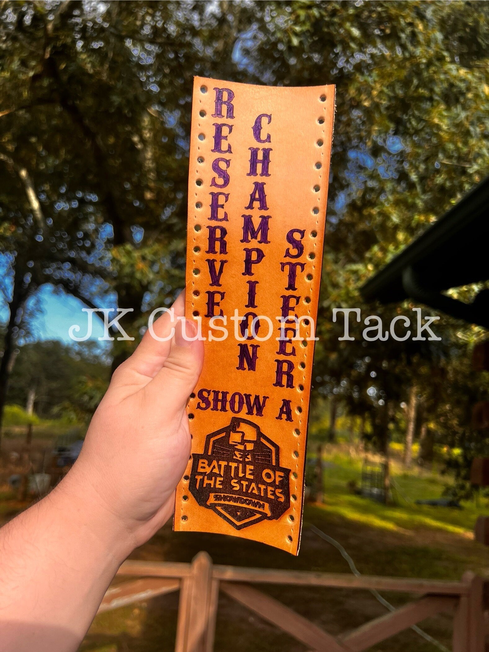 Custom handmade leather show stick wrap for show awards! These can be engraved with a name and the name can be hand painted if you like. These are made to order only. These are for award ceremonies that will need long names as shown above and logos.