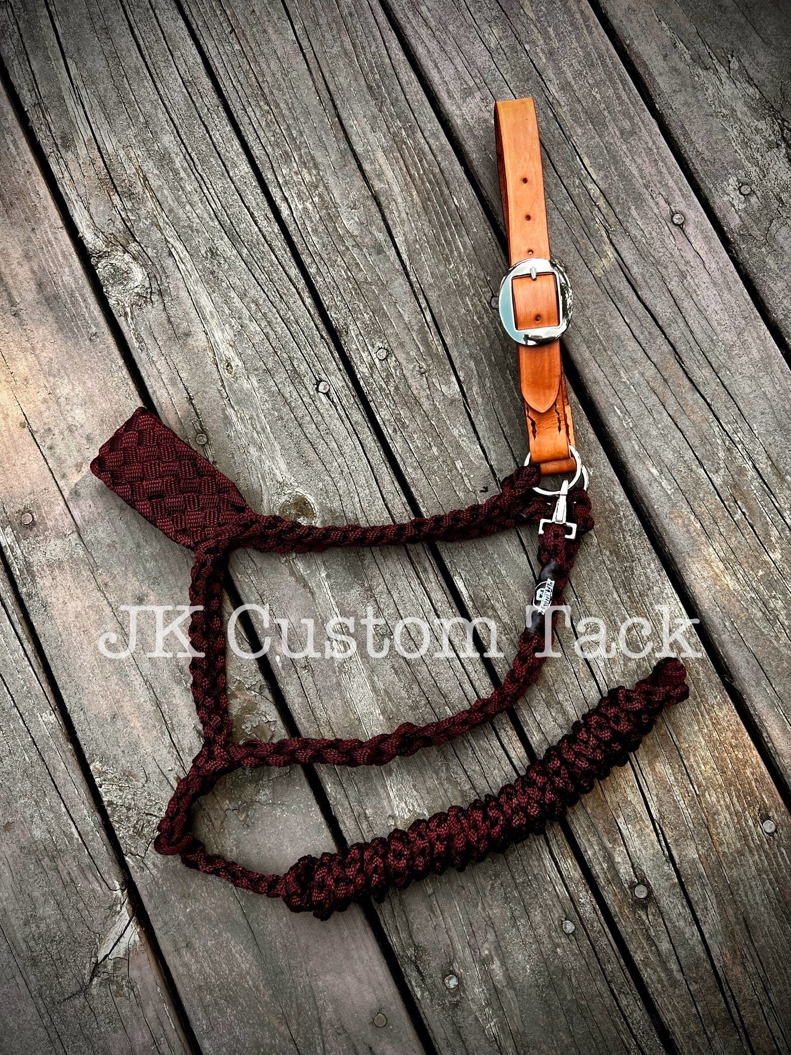 Horse Halter H2. Made with genuine leather and stout mule tape. This halter features a wide mule tape noseband with a leather poll strap. Easy on/off chin strap optional. Thank y’all!!