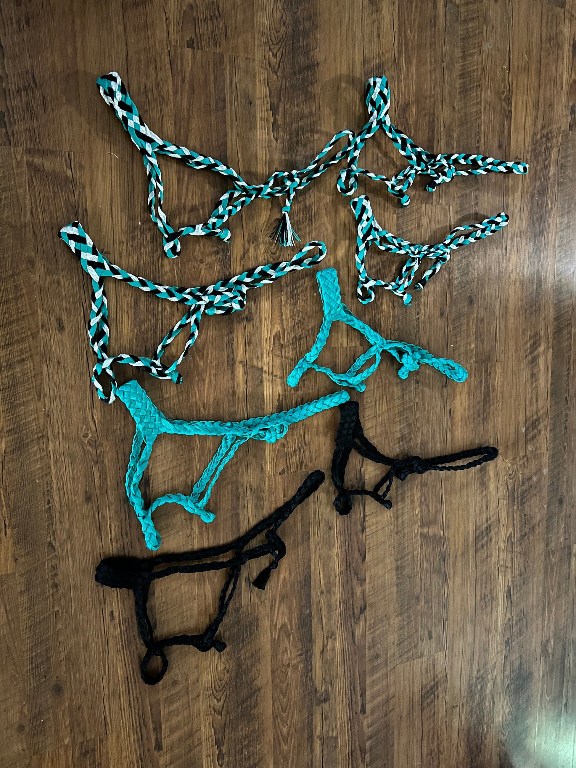 Custom handmade mule tape halters with 8' leads! These will fit both ponies and foals. These are made stout and built to last. Choose up to 3 of the colors we have in stock! Feel free to send me a message if you have any questions! I look forward to creating something special for you and your horse. Thank you for supporting my small business!