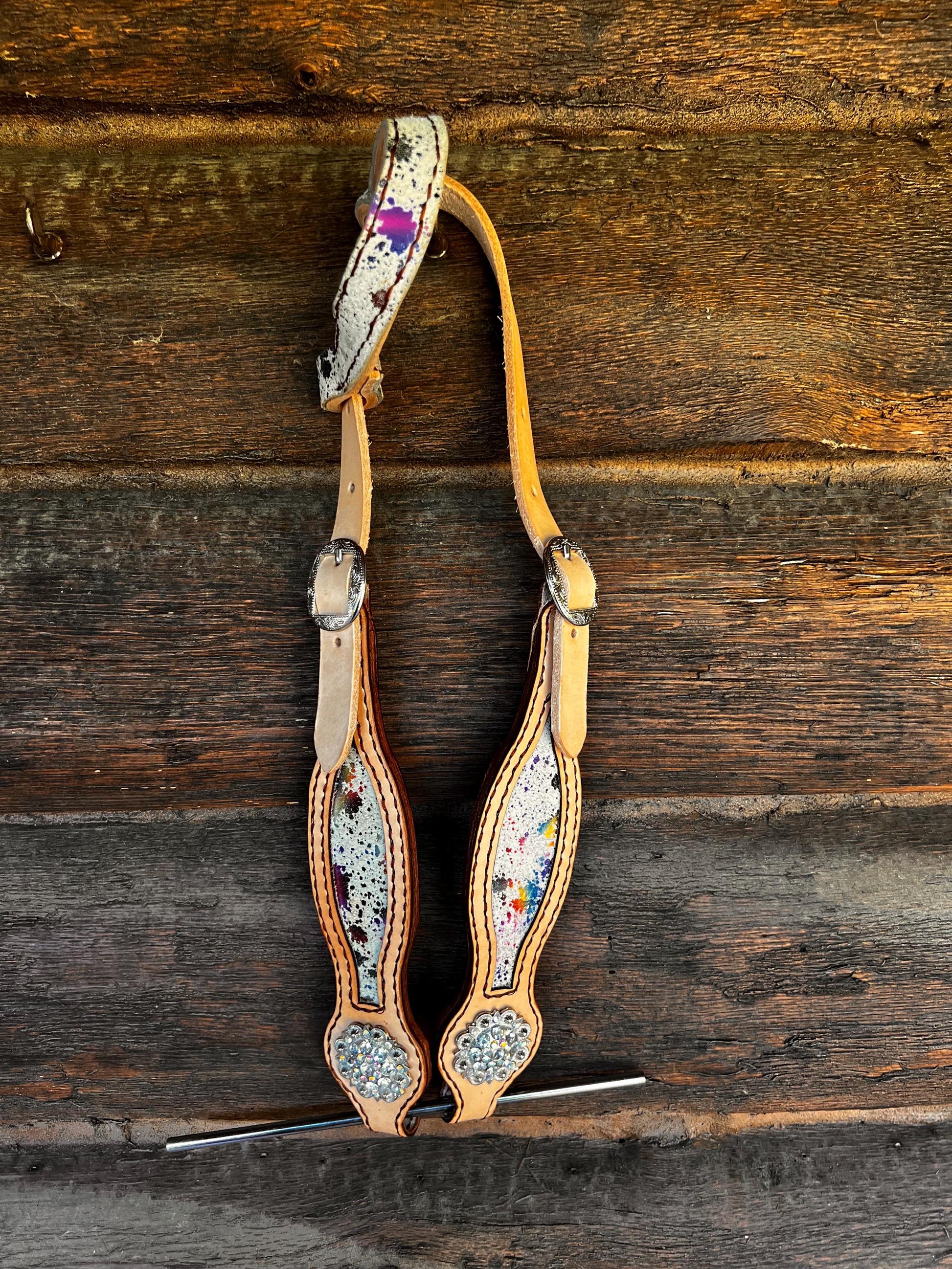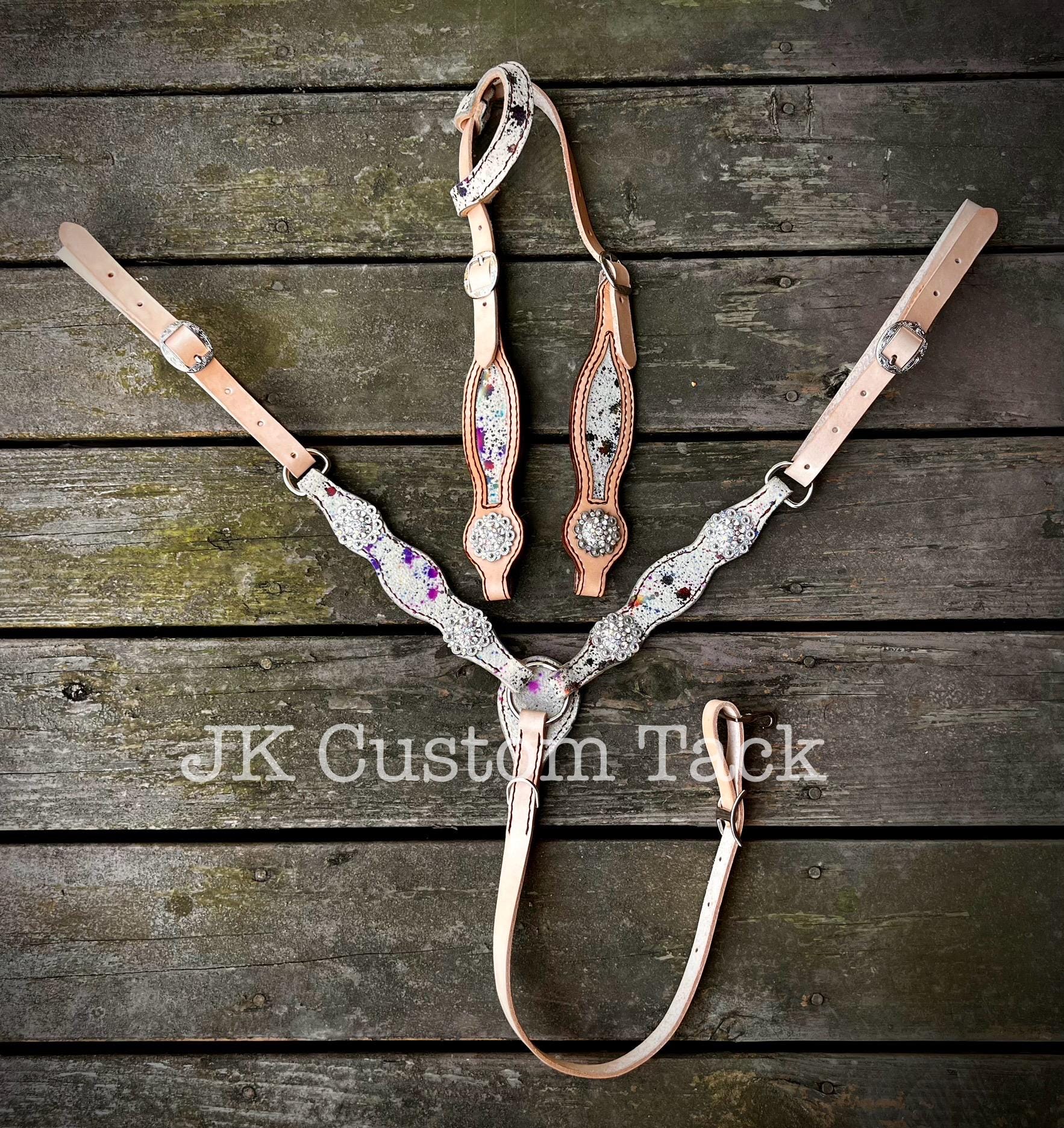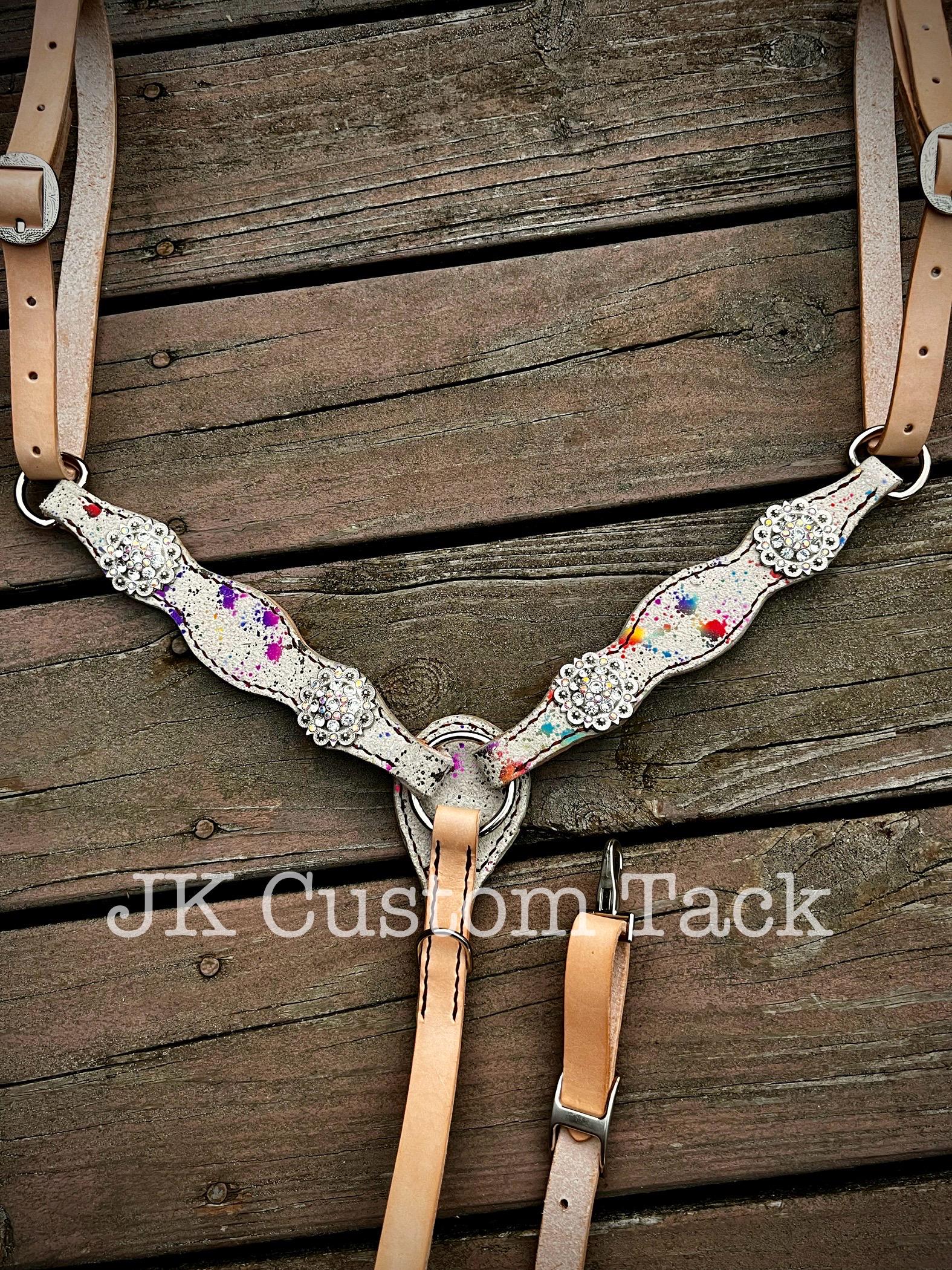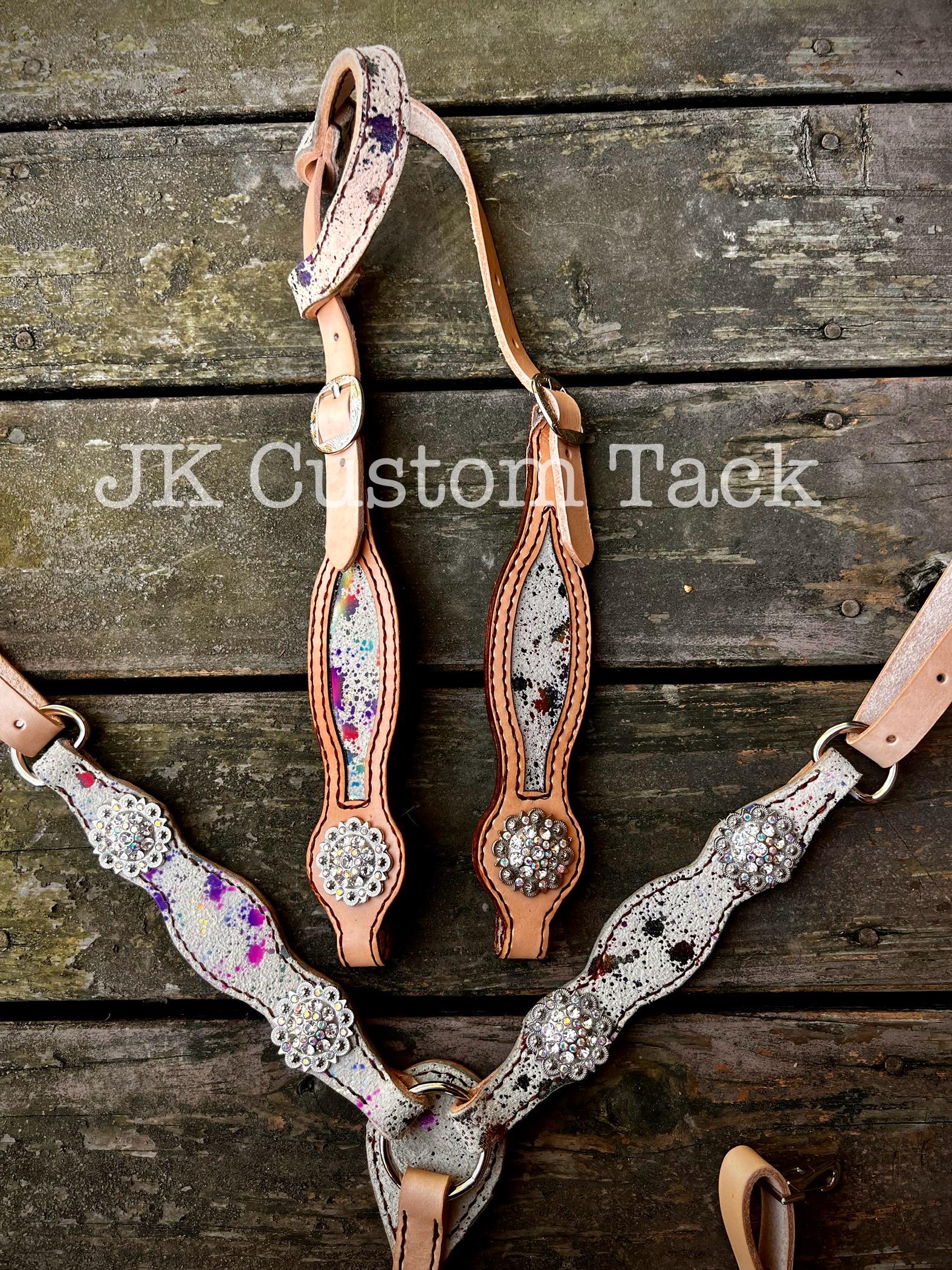 PONY Sized Handcrafted Rainbow Acid Wash Leather Tack Set Breastcollar/Headstall